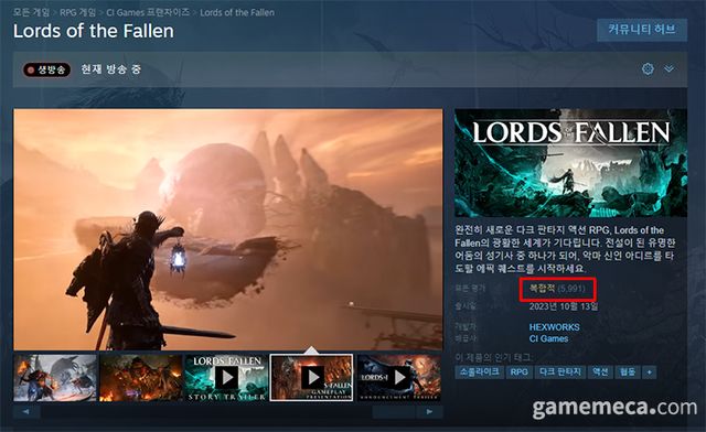 지난 13일 출시된 로드 오브 더 폴른이 시장에서도 박한 평가를 면치 못했다. 10월을 대표하는 소울라이크 기대작으로 손꼽혔으나, 15일 오전 11시 39분 기준 스팀 유저평가는 리뷰 수 5,991개에 '복합적(53% 긍정적)'에 불과하다.