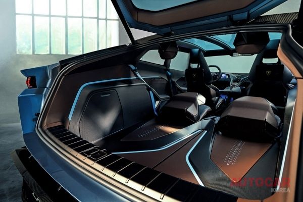 실내는 이탈리아에서 조달한 지속 가능한 소재로 거의 대부분이 쓰였다. 대시보드, 시트 및 도어 카드에는 메리노 울이 사용되었고, 컬러 스티칭은 재활용 나일론과 플라스틱을 혼합하여 제작되었다. 시트 베이스의 폼은 재활용 섬유로 3D 프린팅 되었으며, 심지어 실내 전체에 사용된 탄소 섬유 모양의 패널은 천연 섬유와 탄소 가닥이 혼합되어 “람보르기니의 DNA와 지속 가능성 요건에 부합”한다고 설명한다.
