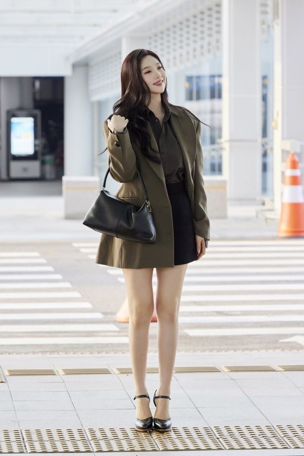 출국 전 조이는 변함없이 사랑스러우면서도 세련된 미모와 함께 한층 우아해진 무드로 이목을 끌었다. 여기에 페미닌한 실루엣이 돋보이는 카키색 재킷과 T 케이스 백으로 세련된 가을 스타일링을 완성했다.