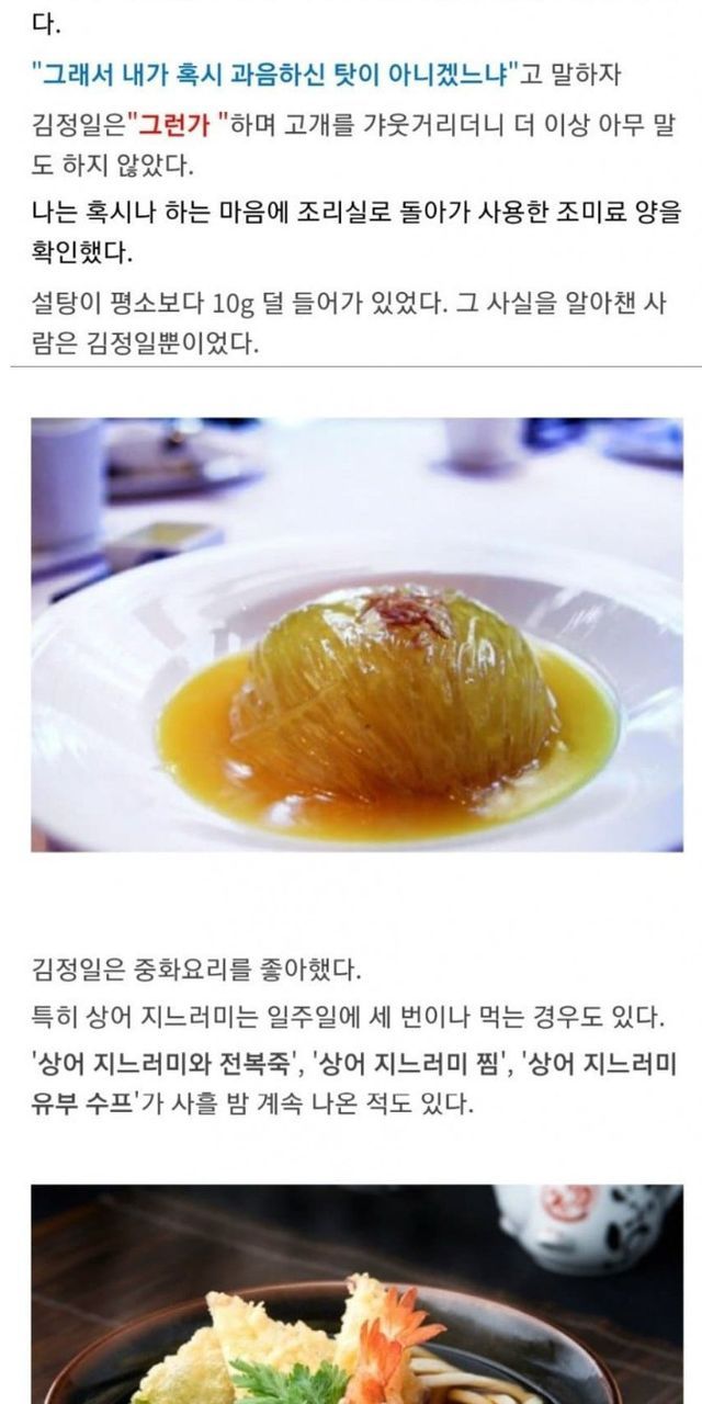 김정일 전속 요리사가 말하는 김정일 요리 취향