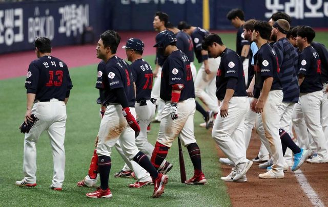 지난 5월 28일 오후 서울 구로구 고척 스카이돔에서 열린 프로야구 '2023 신한은행 SOL KBO리그' 롯데 자이언츠와 키움 히어로즈 경기, 5대 7로 패배한 롯데 선수들이 아쉬운 표정을 지으며 그라운드를 빠져나가고 있다. / 뉴스1