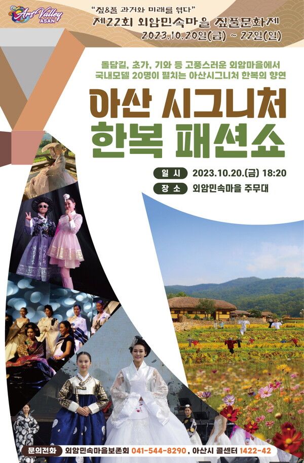 [뉴스앤북 = 최진섭 기자] 충남 아산시는 오는 20일 ‘제22회 아산 외암마을 짚풀문화제’ 개막식에서 ‘땅이 품은 시간을 한복에 담다’라는 주제의 ‘아산 시그니처 한복 패션쇼’를 선보인다고 밝혔다.