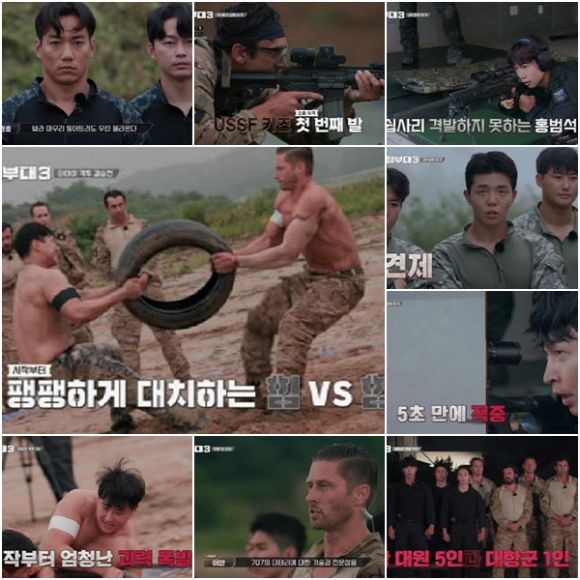 앞서 '시즌2 우승 부대'인 특전사가 첫 번째 탈락 부대가 된 가운데, 이날 '데스매치'에서 살아 돌아온 UDT와 HID는 더욱 살벌한 독기를 내뿜으며 미션에 재합류했다. 두 부대를 포함한 다섯 부대는 '4강 진출권'이라는 베네핏이 걸린 '종합실탄사격' 미션이 공개되자, 회의 끝에 에이스 대원들을 출전시켰다.