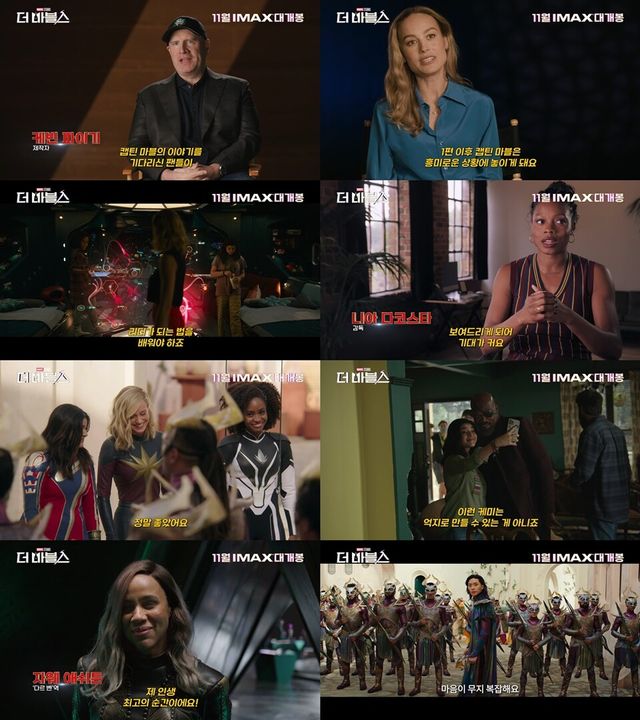 공개된 '팀 마블스 제작기' 영상은 브리 라슨의 인터뷰와 다이내믹한 촬영 현장의 모습으로 시작된다. "혼자 활동하던 그녀가 갑자기 낯선 상황에 던져지거든요. 이제 팀의 일원으로 리더가 되는 법을 배워야 하죠"라는 브리 라슨의 말은 캡틴 마블이 그의 두 번째 이야기인 '더 마블스'에서 새로운 인물들과의 팀업으로 완전히 새로운 국면을 맞이할 것을 예고한다.