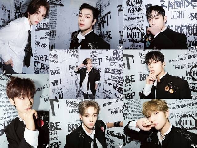 이날 공개된 사진 속 멤버들은 'Color of WHIB(컬러 오브 휘브)' 'NEVERLAND(네버랜드)' 'ALWAYS LOOK ON BRIGHT(올웨이즈 룩 온 브라이트)' 등의 문구가 적힌 벽 앞에서 다양한 포즈를 취하고 있어 시선을 사로잡는다.