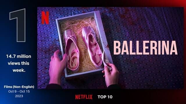 18일 넷플릭스 TOP 10 웹사이트에 따르면 영화 '발레리나'는 넷플릭스 글로벌 TOP 10 영화(비영어) 부문 1위에 올랐다. 또한 지난 9일부터 15일까지 시청 횟수 1470만 회, 시청 시간 2310만 시간을 기록했다.