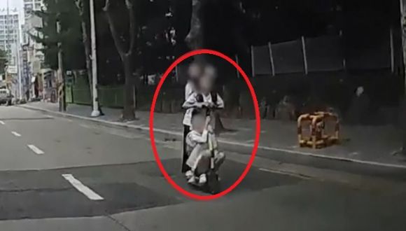 영상에 따르면 이들 여학생은 킥보드 기둥을 잡은 채 앉아 있거나 앞 학생의 허리 잡고 서 있는 등 불안정한 모습을 보였다. 안전 헬멧 또한 착용하지 않았다.