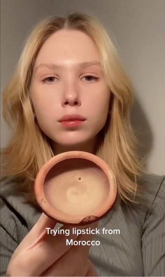 땅 속에서 막 캐낸 유물이 아닐까 의심되는 이 제품은 모로코의 전통 립스틱. 황토 항아리처럼 보이는 제품에 물이 닿으면 빨갛게 색이 올라와 틱톡에서 큰 관심을 모았다. 양귀비 꽃잎, 석류와 같은 천연 재료가 색을 내며 볼과 입술에 착색되 듯 발려 지속력이 뛰어나다는 평이다. 보다 은은하게 발색하고 싶다면 물이 아닌 오일을 사용하면 된다.