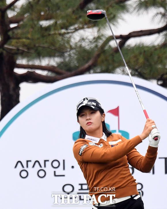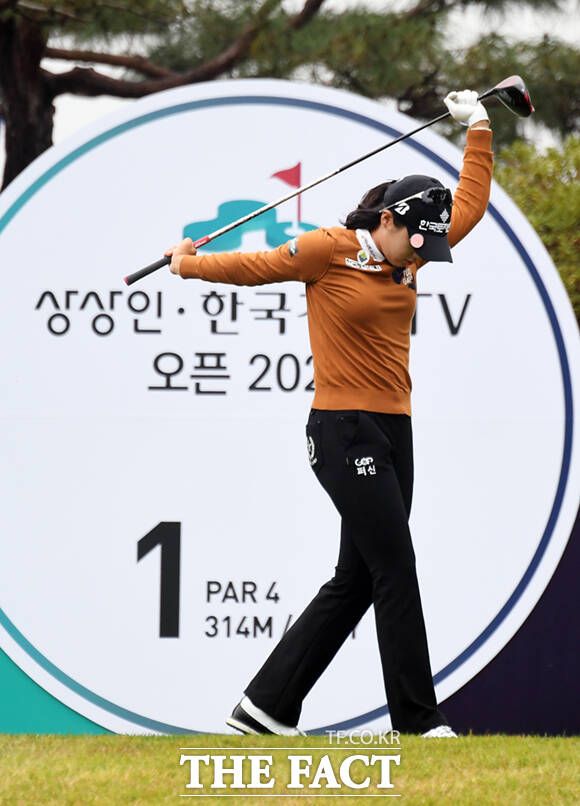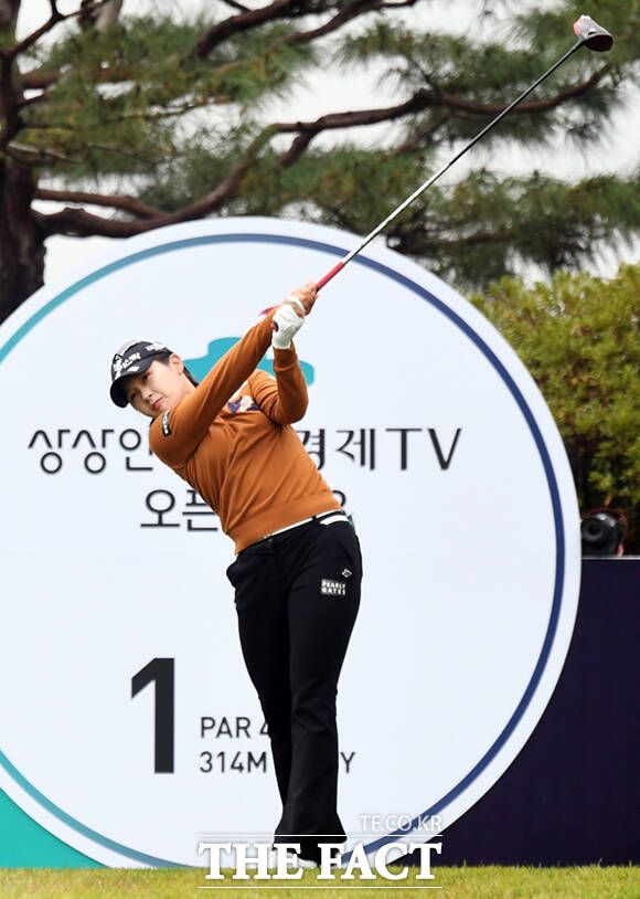 [더팩트ㅣ양주=이새롬 기자] 박현경이 19일 경기 양주 레이크우드CC에서 열린 상상인·한국경제 TV오픈 2023 1라운드 경기에 참가해 1번홀 티샷을 치고 있다.