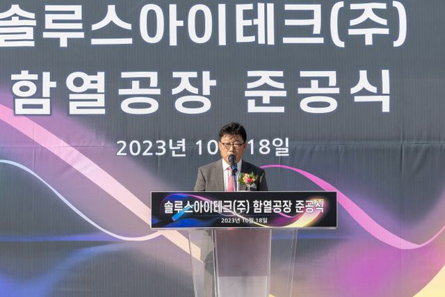 솔루스첨단소재(336370)는 지난 18일 전북 익산시 함열읍에 있는 자회사 솔루스아이테크의 비발광 소재 공장 준공식을 개최하고 시생산에 돌입했다고 19일 밝혔다. 함열공장은 기존 솔루스첨단소재 발광소재 생산기지인 익산공장에서 약 18km 떨어진 함열 생산단지 2만5976㎡ 부지에 6006㎡ 규모로 조성됐다.