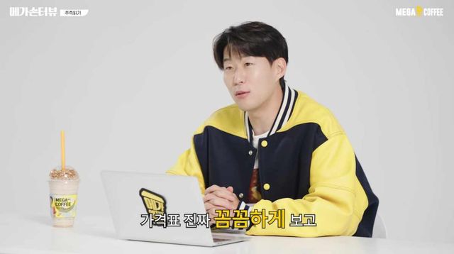 물건살 때 가격표 정말 꼼꼼하게 본다는 손흥민. / 유튜브 '메가MGC커피'