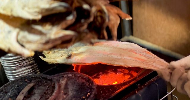 가맥 한쪽에 마련된 황태를 굽는 화로