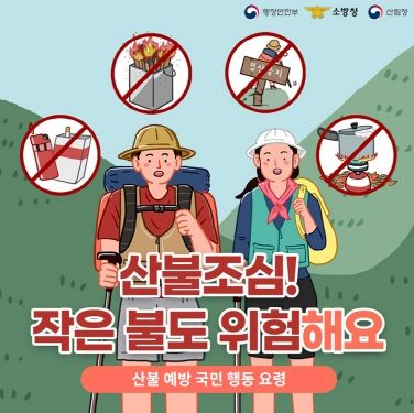 이에 소방서는 가을철 산불 예방법으로 산행 시 라이터, 성냥 등 인화성 물질 소지 금지, 산행 시 취사 금지, 산림 또는 인접 지역에서 흡연 금지, 논ㆍ밭두렁 소각금지 등의 안전 수칙을 당부했다.