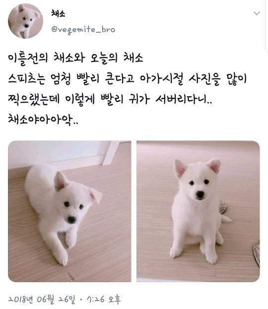 트위터리안이 공개한 사진만으로 스피츠가 얼마나 폭풍성장하는지 알 수 있다.