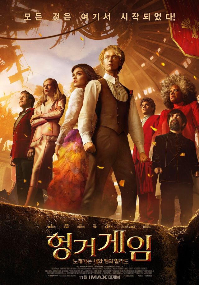 여기에 헌터 샤퍼, 피터 딘클리지, 비올라 데이비스 등 명실공히 연기력을 입증 받은 반가운 배우들의 출연으로 기대감을 높인다. 뿐만 아니라 "모든 것은 여기서 시작되었다!"라는 강렬한 문구는 '헝거게임: 노래하는 새와 뱀의 발라드'가 이전 시리즈로부터 약 65년 전 이야기를 다루고 있는 만큼, 초창기 더욱 야만적이고 잔인했던 ‘헝거게임’의 민낯을 예고하며 호기심을 끌어올린다.