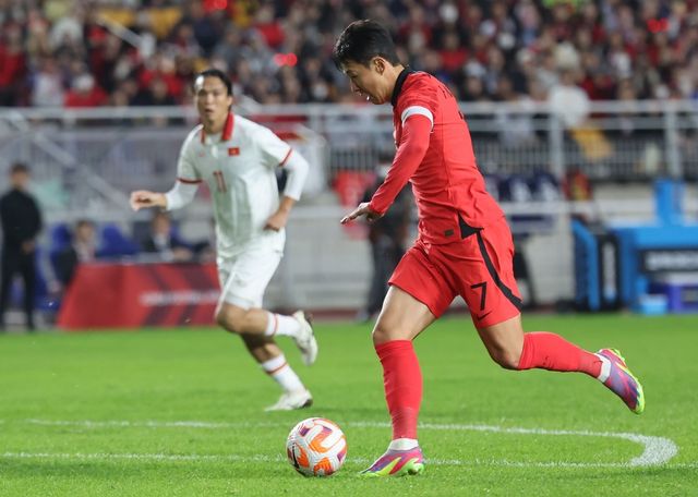 손흥민이 지난 17일 경기 수원시 팔달구 수원월드컵경기장에서 열린 축구 국가대표 평가전 대한민국과 베트남의 경기에서 슛을 시도하고 있다. / 뉴스1