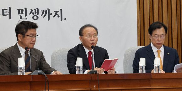 윤 원내대표는 "민주당은 국가부채·가계부채의 증가를 우려하면서 추경을 주장하는 모순에서 벗어나 재정준칙에 협력해야 한다"고 주장했다. 이어 "경제 6단체가 입법 중단을 촉구하는 노란봉투법 대신 일몰을 맞은 기업구조조정촉진법의 재입법에 속도를 내야 한다"고 촉구했다.