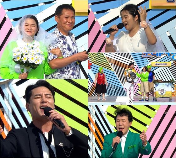한편'전국노래자랑-충북 진천군 편'은 그야말로 사랑과 흥이 꽃피는 무대들로 가득 찰 예정이라고 해 기대를 높인다.특히 결혼을 앞둔 예비신부 참가자가 등장해'너는 내 남자'를 열창하며 예비신랑은 물론 관객들의 마음까지 올킬하는 화끈한 무대를 꾸미는가 하면,무대 위에서 즉석 웨딩마치가 펼쳐져 현장 분위기를 한껏 달아오르게 한다고.뿐만 아니라 무대 위에서 공개구혼을 감행하는 참가자도 등장한다고 해 총15팀의 알콩달콩하고도 유쾌한 무대가 꾸며질'충북 진천 편'에 기대감이 고조된다.