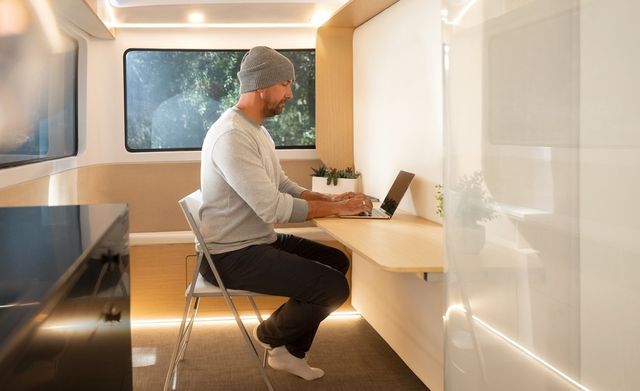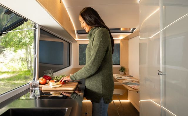페블플로의 중심에 있는 것은 바로 45kWh 배터리 어레이로, 모든 내부 기기와 시스템에 충분한 전력을 공급한다. 배터리 전력 지속 시간은 운전을 얼마나 하는지, TV를 시청하는지, 음악을 듣는지, 요리를 하는지에 따라 달라진다.
