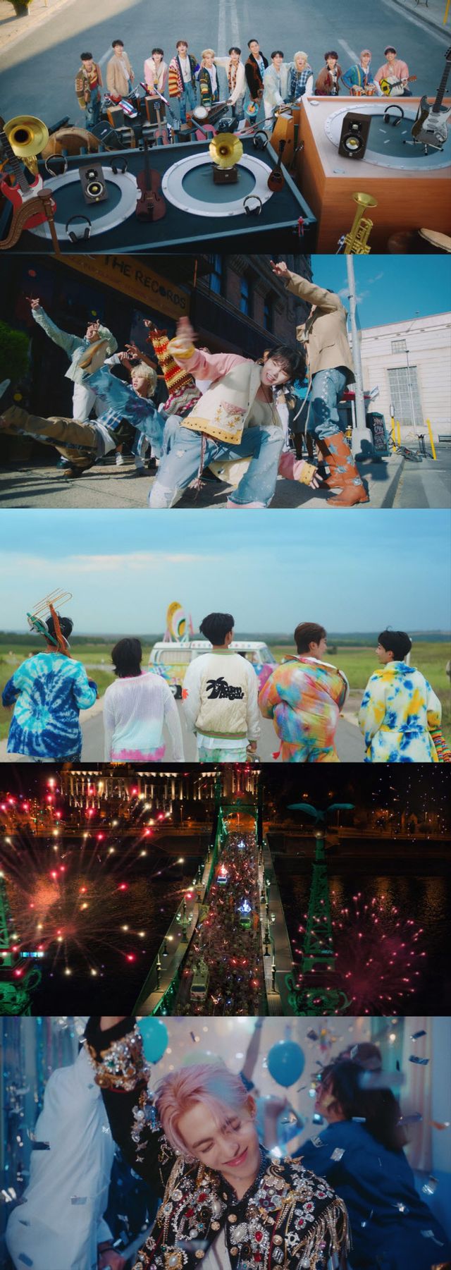 영상에는 ‘음악의 신’ 비트에 맞춰 세븐틴과 아이들이 함께 음악을 즐기며 밝고 행복한 에너지를 발산하는 모습이 담겼다. 헝가리 부다페스트의 야경과 어우러진 압도적 스케일의 ‘세븐틴만의 축제’가 펼쳐지는 장면이 티저 영상의 피날레를 화려하게 장식해 뮤직비디오 본편에 대한 기대를 증폭시킨다.