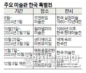 뉴욕타임스는 뉴욕 구겐하임 미술관과 메트로폴리탄 미술관, 필라델피아 미술관 등 최소한 5곳의 대형 미술관에서 한국 미술을 조명하는 특별전이 진행된다고 20일 보도했다.