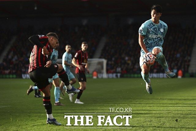 득점권역에서 자신감 넘치는 모습으로 시즌 6골 1도움을 기록하고 있는 황희찬(오른쪽)./본머스=AP.뉴시스