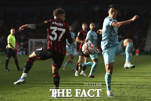 황희찬은 울버햄튼의 최전방에서 몸을 사리지 않는 과감한 플레이로 활력을 불어넣고 있다./본머스=AP.뉴시스