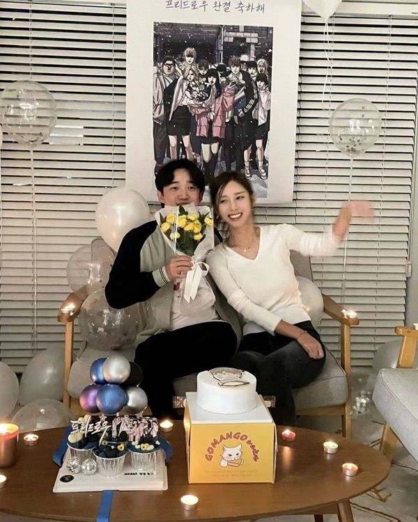 공개된 사진 속 부부는 나란히 앉아 환하게 웃고 있다. 또 야옹이는 큰 현수막에 '10년 동안 엉덩이 문드러질 때까지 연재한 전선욱 대단하다! 만화 천재 욱짱의 완결을 진심으로 축하해'라고 적으며 '프리드로우' 완결을 축하했다.