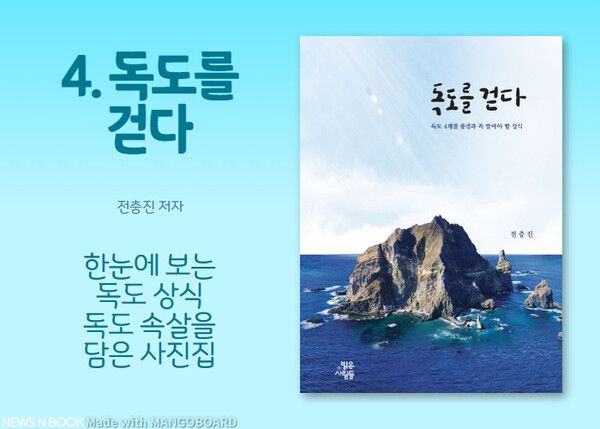 또한, 독도에 가도 관광객이 볼 수 없는 풍광과 사계절 사진이 담겼다. 독도 간다고 해서 결코 알 수 없고, 볼 수도 없는 ‘우리 땅 독도’를 역동적인 사진을 감상하며, 책장을 훌훌 넘기다 보면 분명하게 알게 될 것이다.