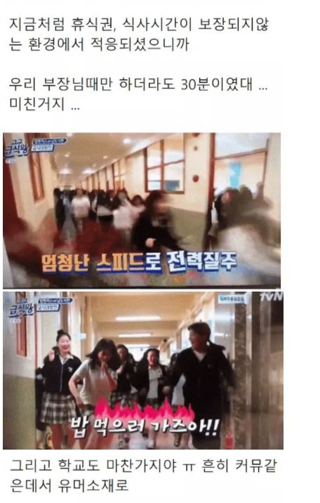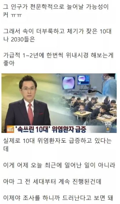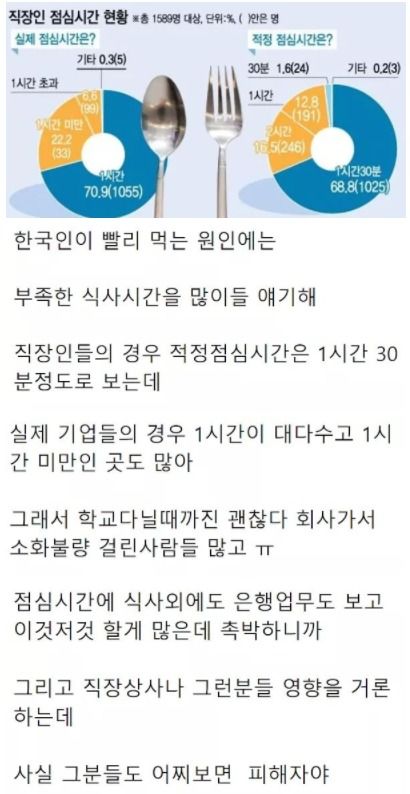 이를 본 누리꾼들은 "이게 진짜인게 회사 옮기고 점심 시간이 배로 늘었는데 건강이 진짜 좋아졌어. 소화도 잘 되고 속 더부룩한 느낌도 없고 너무 좋다" "여기에 맵고 자극적인 음식도 좋아하니까 위가 안 좋을 수밖에 없지" 등의 반응을 보였습니다.
