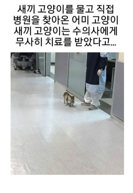 바로 너무 귀여운 엄마 고양이가 새끼 고양이를 직접 병원에 데려가면 무료로 치료를 받을 수 있다고 합니다.