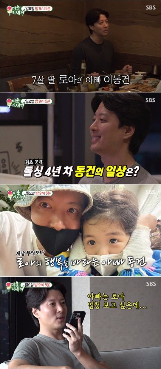 이어 이동건은 7살 딸 로아와 통화하는 모습도 공개했다. 그는 "매주 일요일 로아를 만났다. 아빠일 뿐이니까"라며 "열심히 서포트해서 행복하게 크는 모습을 보고 싶다"고 밝혔다.