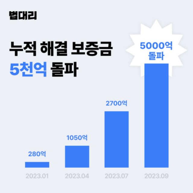 합리적 비용의 비대면 전문 변호사 서비스 ‘법대리’를 운영하는 유스티티아가 주력으로 서비스하고 있는 ‘전세금 미반환’ 임차인 전용 서비스를 통한 누적 사건 해결 보증금이 5천억을 돌파했다고 밝혔다.