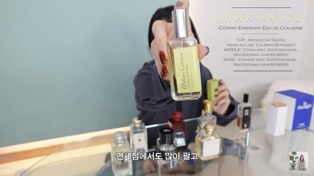 아담한 사이즈 덕분에 휴대용으로도 좋은 이 아틀리에 코롱 제품은 자연을 가득 느낄 수 있는 프레시한 향이 특징이에요. 레몬 같은 상큼한 과일 향과 나무, 숲, 풀 향으로 가득해 싱그러운 인상을 각인시키고 싶을 때 제격. 윤은혜는 자신의 분위기나 기분을 환기하고 싶을 때 주로 뿌린다고 하네요.