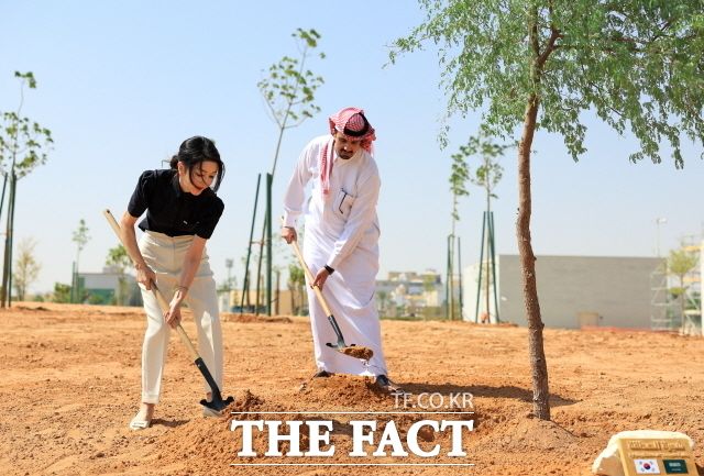 [더팩트ㅣ박숙현 기자] 윤석열 대통령과 함께 사우디아라비아를 방문 중인 김건희 여사는 23일(현지시간) 사우디의 환경 프로젝트 현장을 찾아 기념식수하고, 환경 분야에서의 양국 협력을 더 늘려 나가자고 했다.
