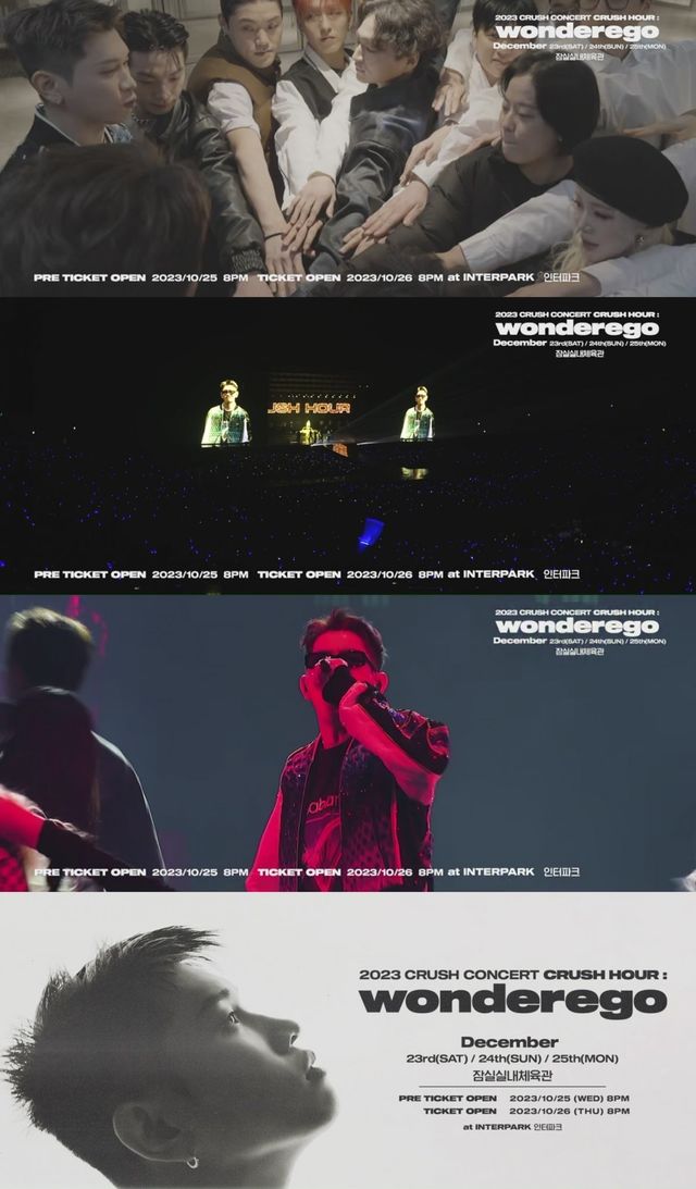크러쉬는 23일 공식 SNS를 통해 12월 23~25일 사흘간 서울 잠실 실내체육관에서 열리는 연말 단독 콘서트 2023 CRUSH CONCERT 'CRUSH HOUR : wonderego(원더이고)' 티저 영상을 게재했다.