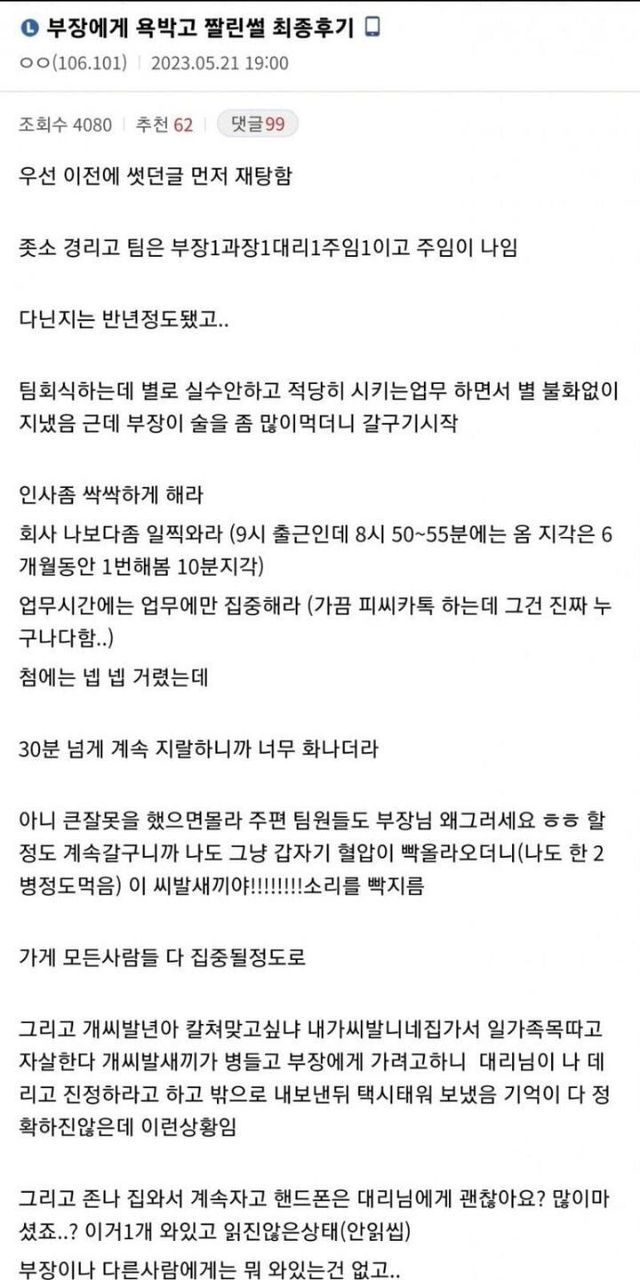 부장에게 욕하고 짤린 디씨인