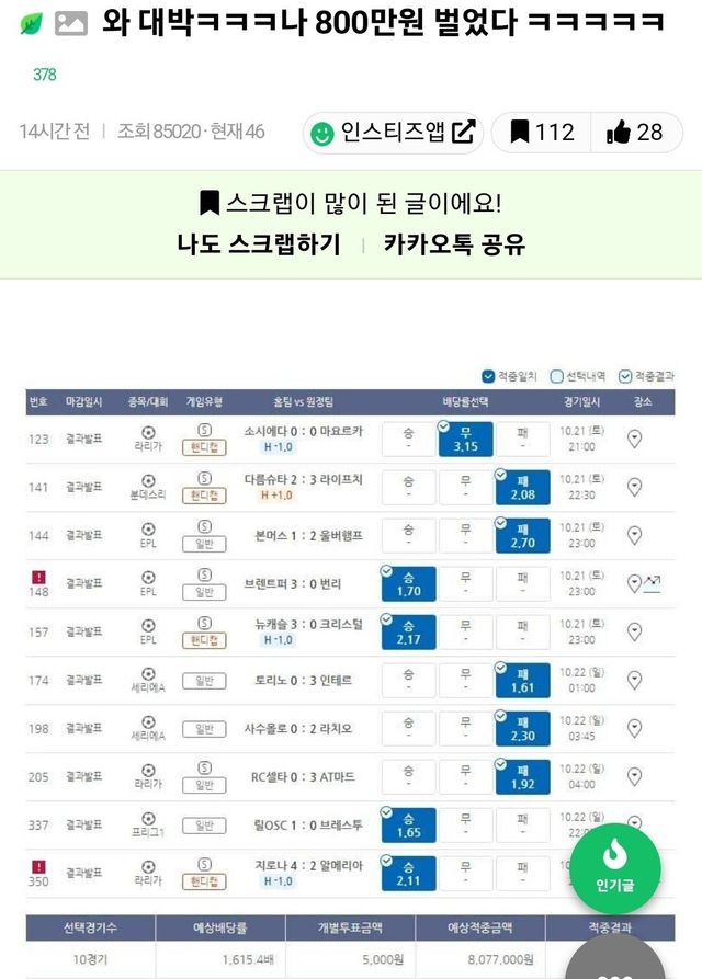 5000원으로 800만원 딴 인티녀 ,,