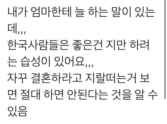 오죽하면 "인생은 태어나서 관에 들어가기까지의 과정인데, 결혼은 관에 못을 박는 행위다"라고 표현합니다.