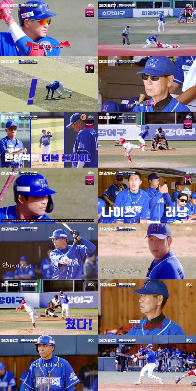9회 초, 최강 몬스터즈에게 역전의 기회가 찾아왔다. 최강 몬스터즈 박재욱의 안타를 시작으로 유태웅과 정근우가 볼넷을 얻어내 1아웃 만루 찬스를 만들었다. 안타 하나면 역전까지 가능한 상황 속에서 김문호가 타석에 들어섰다. 물오른 타격감을 보여주고 있는 김문호였기에 모두의 기대를 한몸에 받았다.