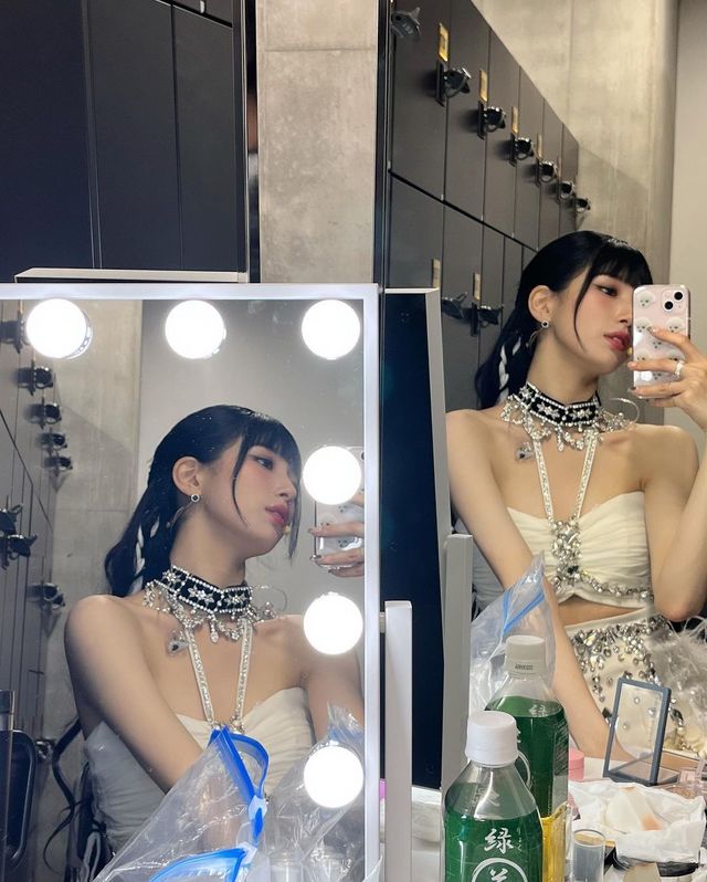 공개된 사진에는 수지가 메이크업을 받는 모습과 화려한 무대의상을 입고 치명적인 포즈를 취하는 모습이 담겨있다. 그는 화려한 무대 의상에도 눈에 띄는 백옥같은 피부와 자연스러운 히메컷을 찰떡같이 소화해 아이돌 비주얼을 자랑했다.