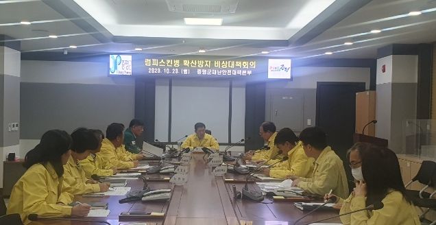 23일 군에 따르면, 이날 오후 8시 이재영 군수 주재로 관련 부서장 10여 명이 참석한 가운데 럼피스킨병 확산방지 비상대책회의를 개최했다.