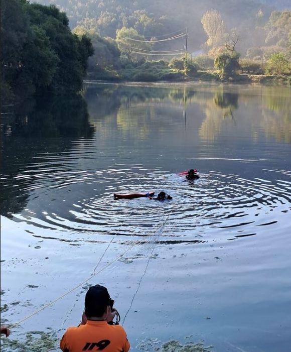 신고를 받은 출동한 소방 당국이 현장에 도착했으나 차량은 이미 물속으로 완전히 가라앉아 보이지 않은 상태였다.