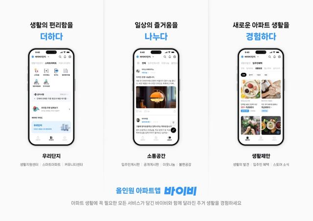 바이비는 더욱 직관적이고 편리한 사용성을 제공하기 위해 앱의 사용자 인터페이스(UI)와 사용자 경험(UX)을 개선했다. 이를 통해 서비스의 복잡도는 낮추고 사용법 습득에 따른 피로도를 해소하는 동시에 입주민들을 위한 다양한 기능을 강화했다.