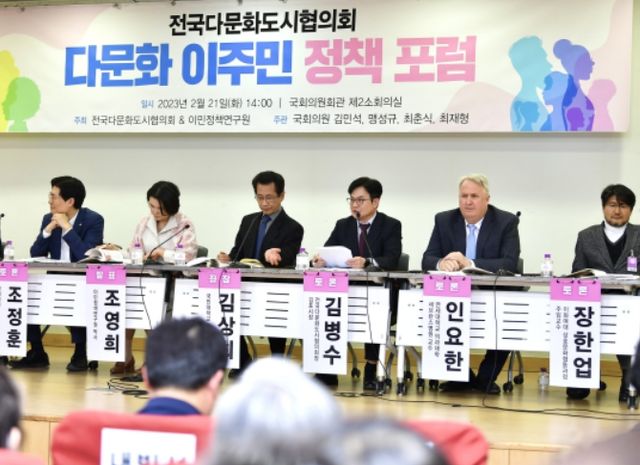 | ▲ 2월 21일 열린 전국다문화도시협의회 다문화 이주민 정책 포럼에서 김병수 김포시장이 토론자로 나서 발언하고 있다. |