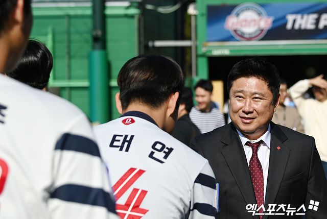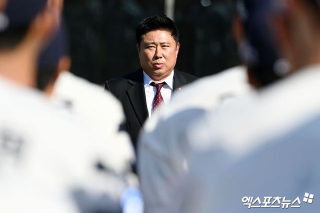 김태형 감독은 25일 오전 경상남도 김해에 있는 롯데 2군 구장에서 1, 2군 선수단과 코칭스태프, 프런트와 짧게 상견레를 진행했다. 전날 취임식 후 롯데 감독 자격으로 첫 공식 행보에 나섰다.