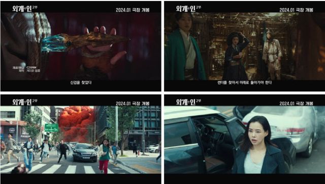 [이데일리 스타in 김보영 기자] 영화 ‘외계+인’ 2부가 독창적인 세계관 속 매력적인 캐릭터들의 눈부신 시너지와 역대급 스케일의 볼거리를 선사할 전망이다. 영화 ‘외계+인’ 2부(감독 최동훈)가 마침내 2024년 1월 개봉을 확정 짓고, 티저 포스터와 티저 예고편을 26일 공개했다.