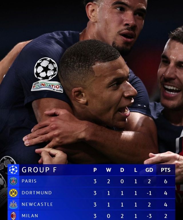 죽음의 조 F조에서 선두를 달리고 있는 팀은 이강인이 속한 파리 생제르맹(PSG)이다. PSG는 26일 열린 매치데이3에서 AC밀란에 3-0 대승을 거두며 조 1위로 올라섰다. PSG는 킬리안 음바페, 랑달 콜로-무아니 그리고 이강인의 쐐기골에 힘입어 대승을 챙겼다. 반면 도르트문트는 뉴캐슬 유나이티드 원정길에서 1-0으로 승리하며 승점 4점을 쌓아 조 2위에 자리했다. 승점 차이가 촘촘한만큼 마지막까지 큰 순위 변동이 예상된다.