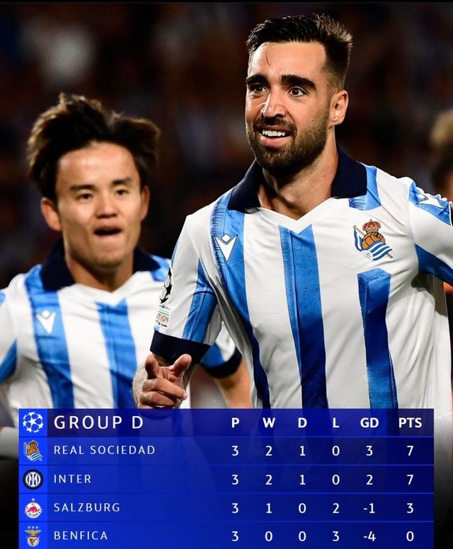 다소 큰 관심을 받지 못했지만, 가장 흥미로운 조는 D조다. 레알 소시에다드와 인터밀란이 승점 7점으로 1, 2위에 위치해 있고, 잘츠부르크, 벤피카가 3, 4위를 차지 중이다. 특히 쿠보 타케후사는 이번 매치데이3에서 UEFA 공식 POTM(Player Of The Match)에 선정될 정도로 맹활약을 펼쳤다.