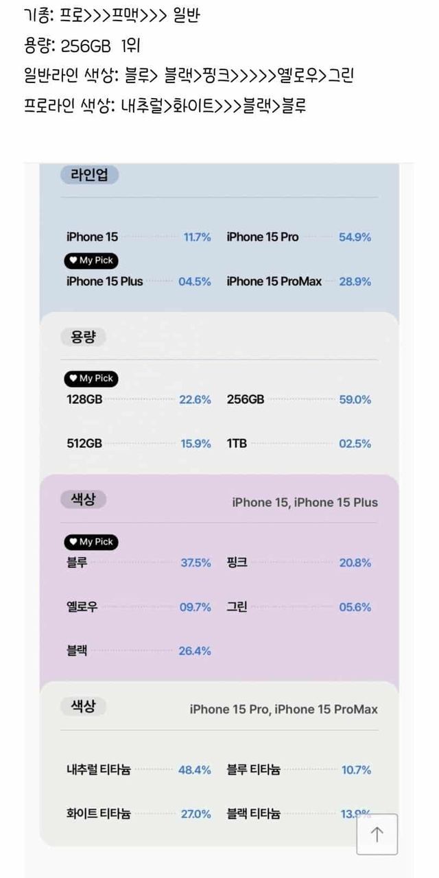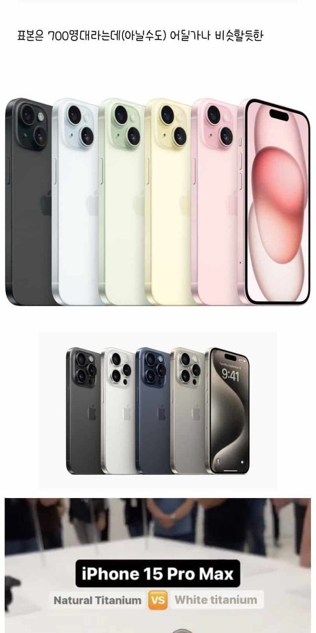 아이폰15 기종, 색상, 용량 수요조사 순위 ,,
